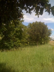 There are walnut trees with little fruit, pear trees with nearly no peas on them (just as in our back yard-it seems the weather was too cold for bees when they were in blossom and we forgot to hand-pollinate them...), and apple trees with plenty of small sour apples. It is a pity that no one takes care of those trees as they would need a good cut and also the fruit just fall down in fall and attract a lot of wasps... But it was a nice part of our walk and I thought I'd share a few pictures taken with my phone.